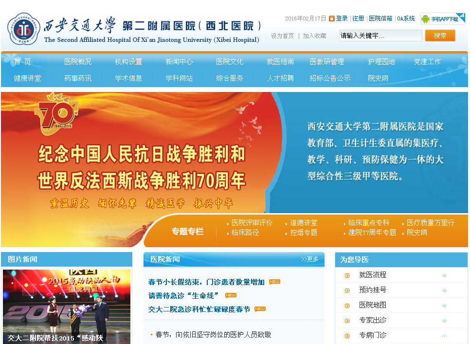 西安交通大学第二附属医院、西安交通大学第第二临床医学院,第二院名——西北医院。位于陕西省西安市市区内西五路157号,现为直属国家教育部、卫生部的一所集医疗、教学、科研、预防保健为一体的现代化大型综合医院,国家三级甲等医院。