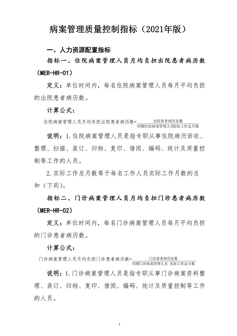 病案管理质量控制指标(2021年版)