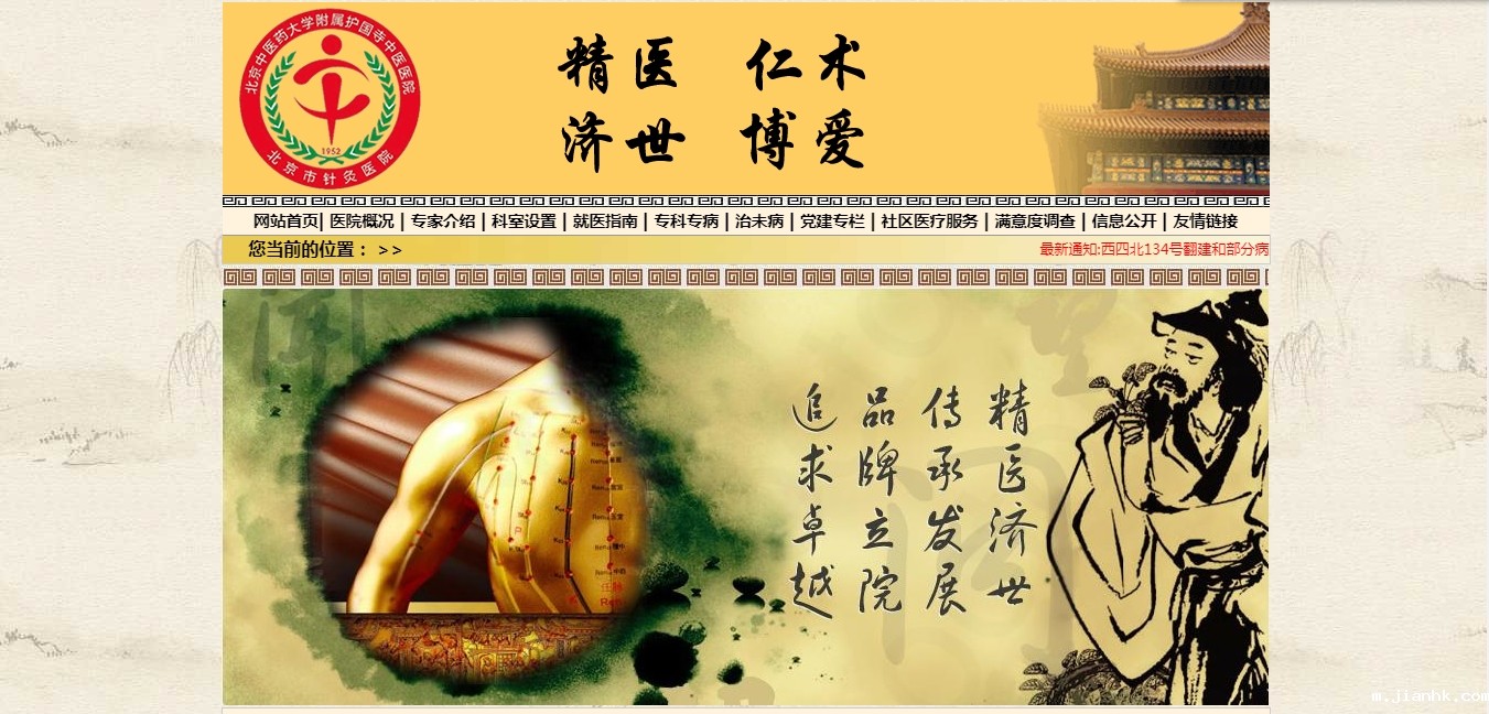 北京中医药大学附属护国寺中医医院、北京针灸医院是一所以中医中药治疗为医疗工作主体,全面承担医疗、教学、科研、预防、社区保健和康复任务的,有着60余年深厚文化底蕴的三级甲等中医专科医院。