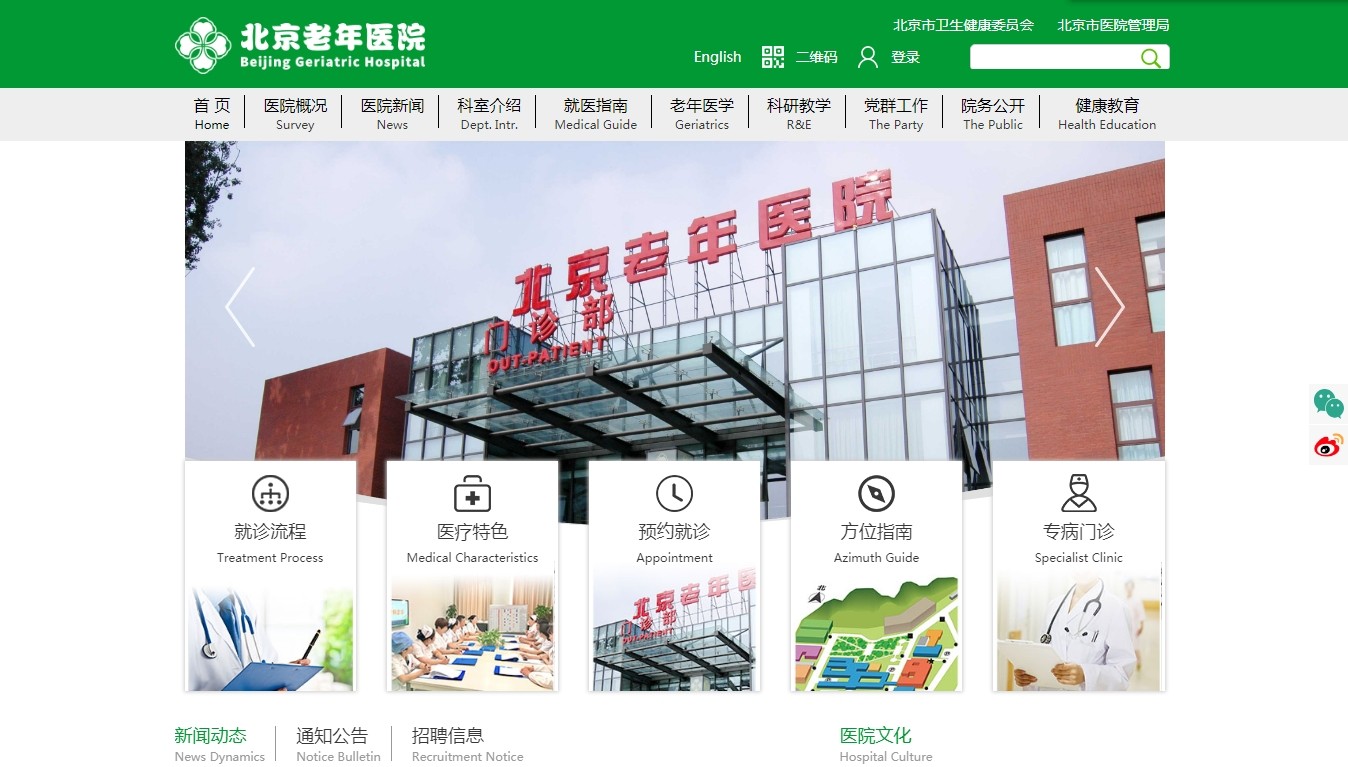 北京老年医院是集老年病医疗、科研、教学、预防于一体的北京市属三级综合医院,首批北京市医保和工伤定点医院及工伤康复定点医院,编制床位 800 张。同时还是北京市老年健康服务指导中心、北京市中西医结合老年病学研究所、北京中医药大学教学医院、北京卫生职业学院教学医院、中国科学院生物物理研究所老年病临床研究基地、国家级本科教育实践基地—临床技能综合培训中心、北京大学护理学院老年护理教学基地、中华护理学会老年护理专科护士临床教学实践基地、北京护理学会老…