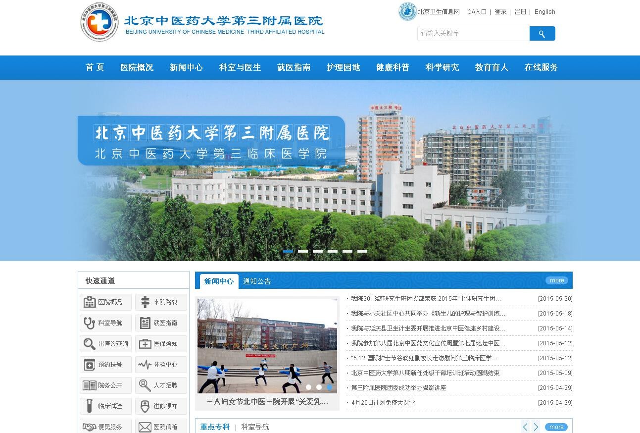 北京中医药大学第三附属医院是一所三级甲等中西医结合医院,国家中医药管理局重点中西医结合医院。前身是建于1964年的冶金医院,2006年7月划转至北京中医药大学,成为北京中医药大学第三附属医院、北京中医药大学第三临床医学院,是一所以脑病科、骨伤科、中医全科医学等疑难危重症诊治为重点,集医疗、教学、科研、预防、保健、康复于一体、特色明显,人才济济,设备齐全的中西医结合医院。