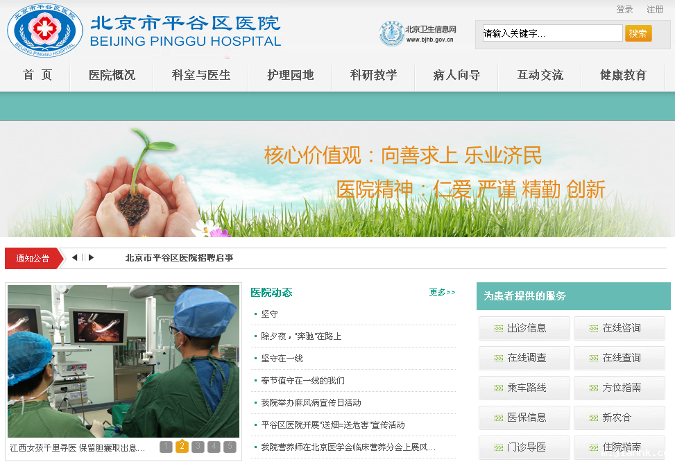 北京市平谷区医院建于1950年,是北京协和医院对口支援单位,首都医科大学教学医院,是一所集医、教、研、防为一体的三级综合公立医院。“向善求上 乐业济民”是平谷区医院的核心理念,最终实现“立足平谷、服务京东、面向全国、接轨国际”的发展目标,将平谷区医院打造成三级精品医院。