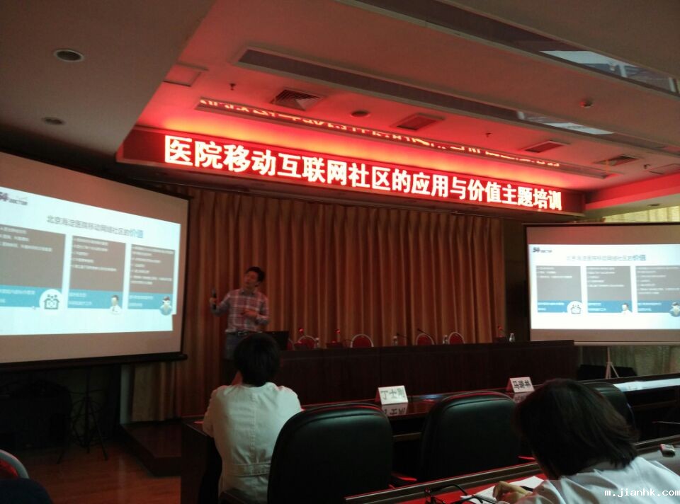 北京海淀医院于2015年10月12日下午组织了以“医院移动互联网社区的应用与价值”为主题的培训交流会,54Doctor创始人周鹏远应邀为就海淀医院即将上线的互联网门户和移动互联网社区应用进行了介绍。此次交流会受到了医院各级领导的支持,与会的70人中有多个科室主任和护士长。 会议由海淀医院宣传中心杨丽媛老师主持,主讲人周鹏远在会上围绕“…
